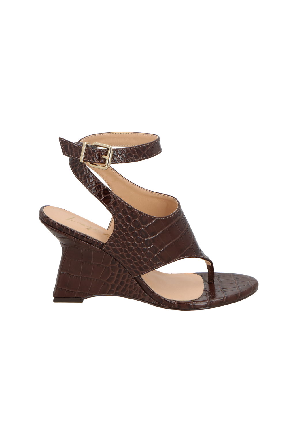 A sandália anabela de dedo em couro croco no tom de café aposta em um design moderno e sofisticado. O modelo apresenta cabedal amplo com recorte elegante e tira no tornozelo com fivela ajustável, que garante segurança e estilo. O salto anabela revestido no mesmo acabamento croco valoriza a textura marcante, resultando em uma peça que traduz personalidade e sofisticação em cada detalhe.
