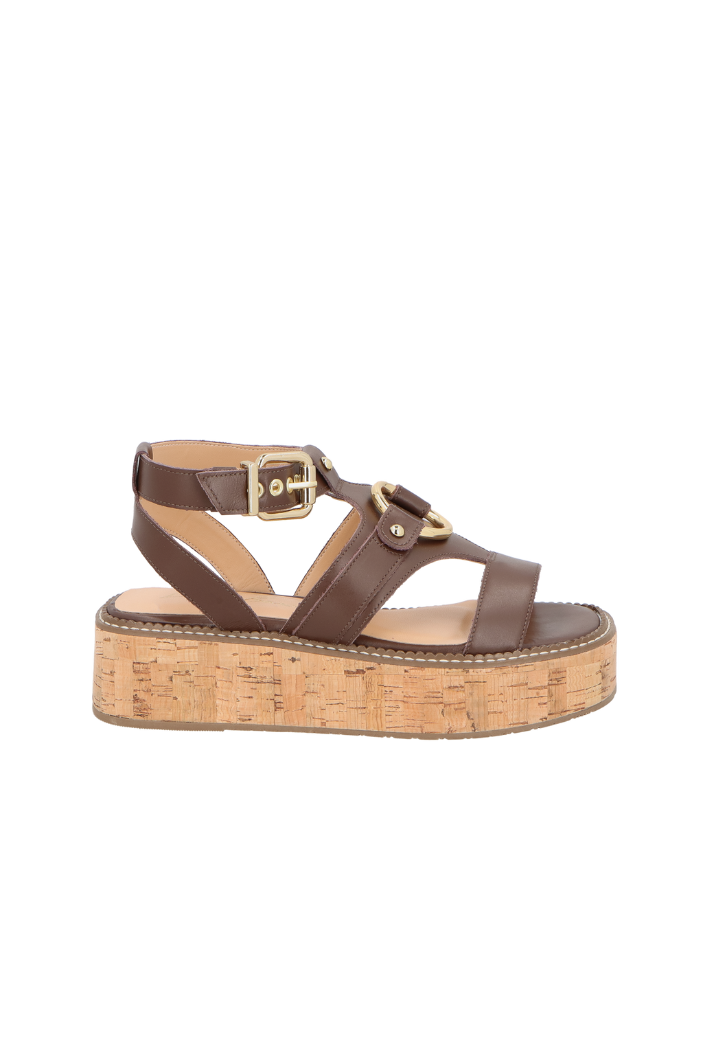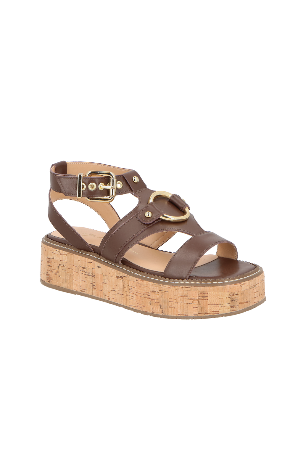 A sandália em couro no tom de coffee aposta em um design moderno e cheio de personalidade. As tiras largas são valorizadas pelo detalhe em fivela metálica que adiciona sofisticação, enquanto a plataforma flat revestida em cortiça garante conforto aliado a um visual contemporâneo. Um modelo versátil que traduz moda e praticidade em cada detalhe.