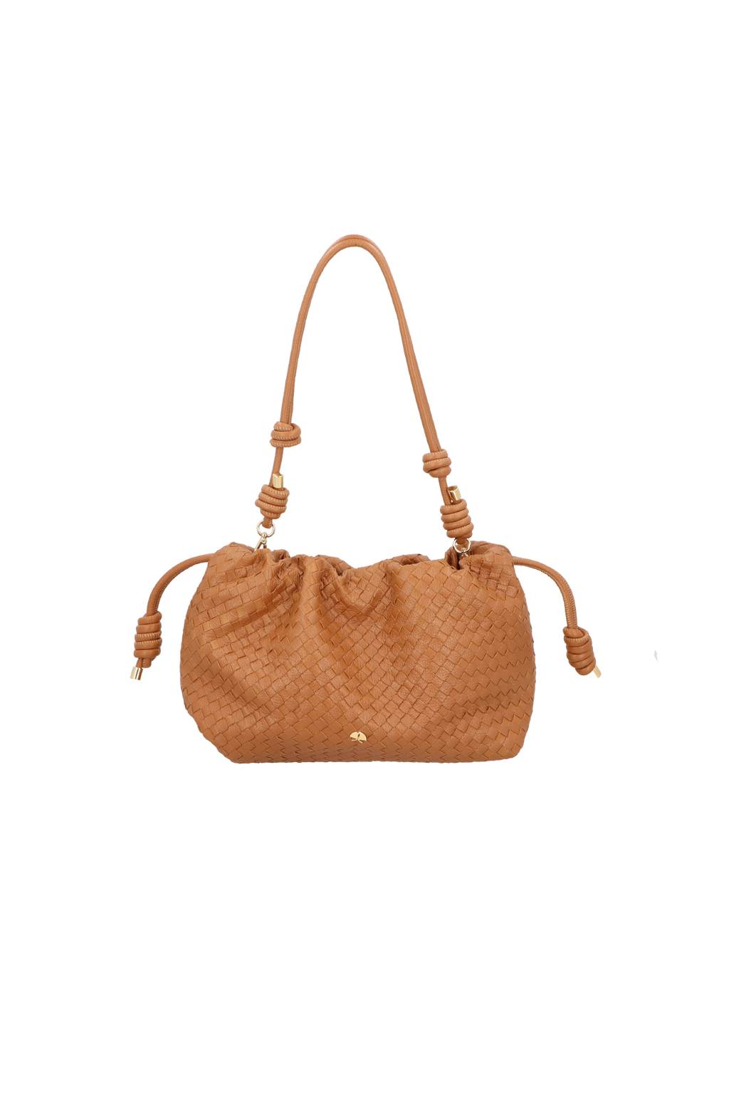 A bolsa média em couro caramelo aposta na sofisticação do trabalho em tressê, que valoriza o acabamento artesanal e garante textura ao visual. O modelo possui fechamento prático por ajuste e alça de mão com detalhe em nós, que adiciona charme contemporâneo à peça. Um design versátil, que une autenticidade e elegância em cada detalhe.