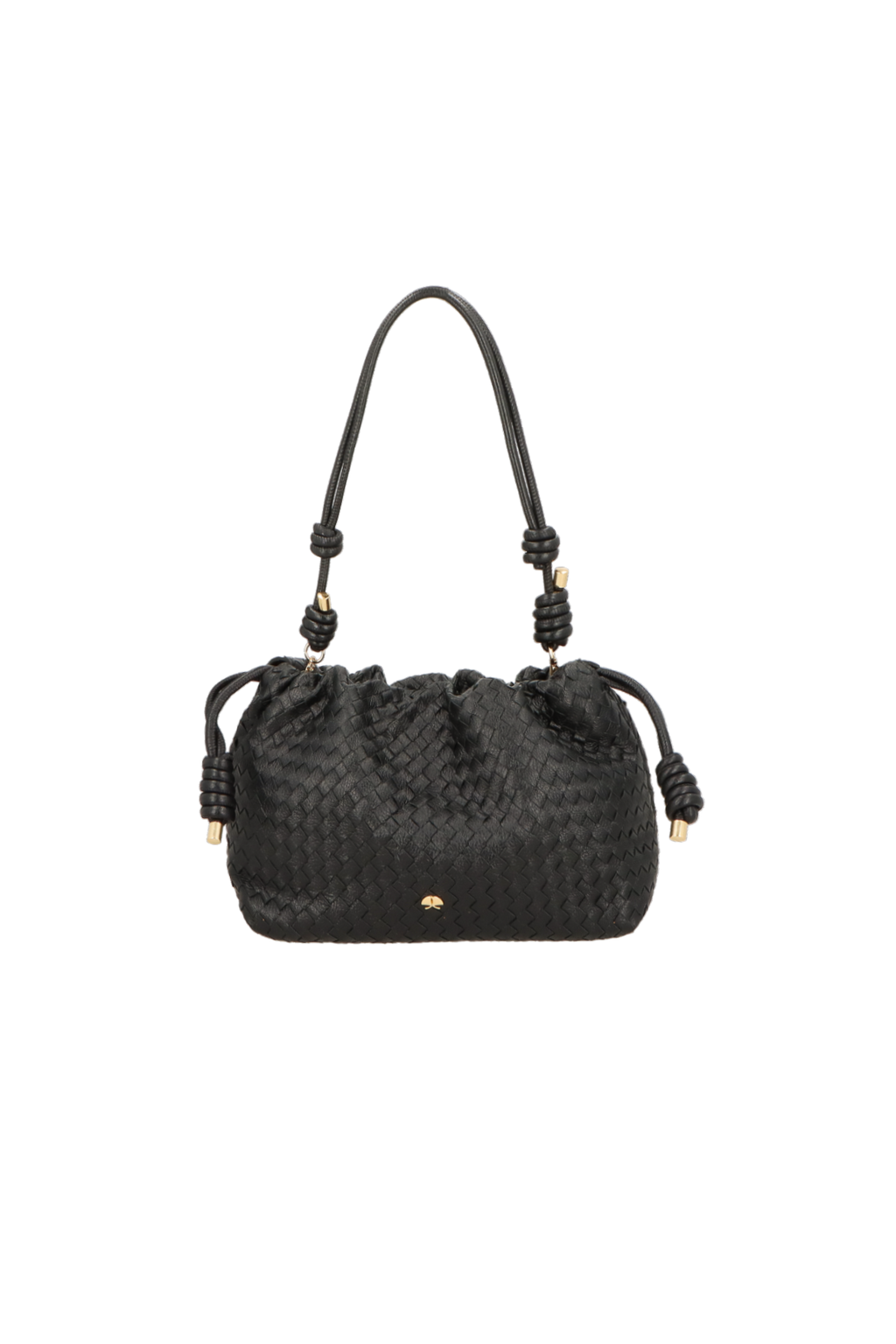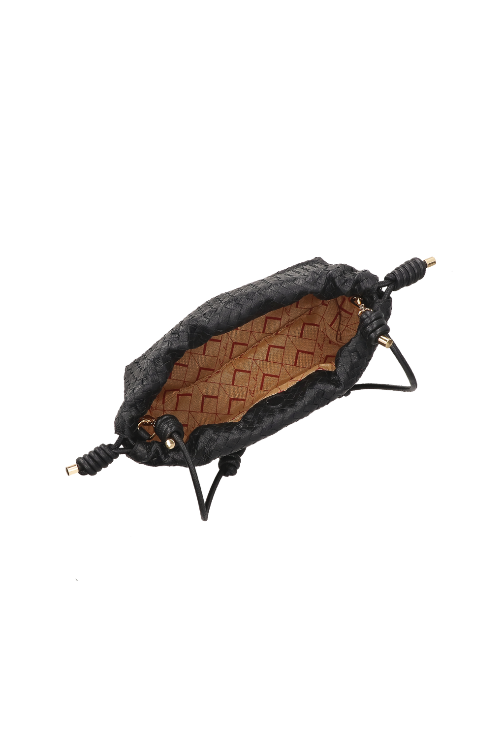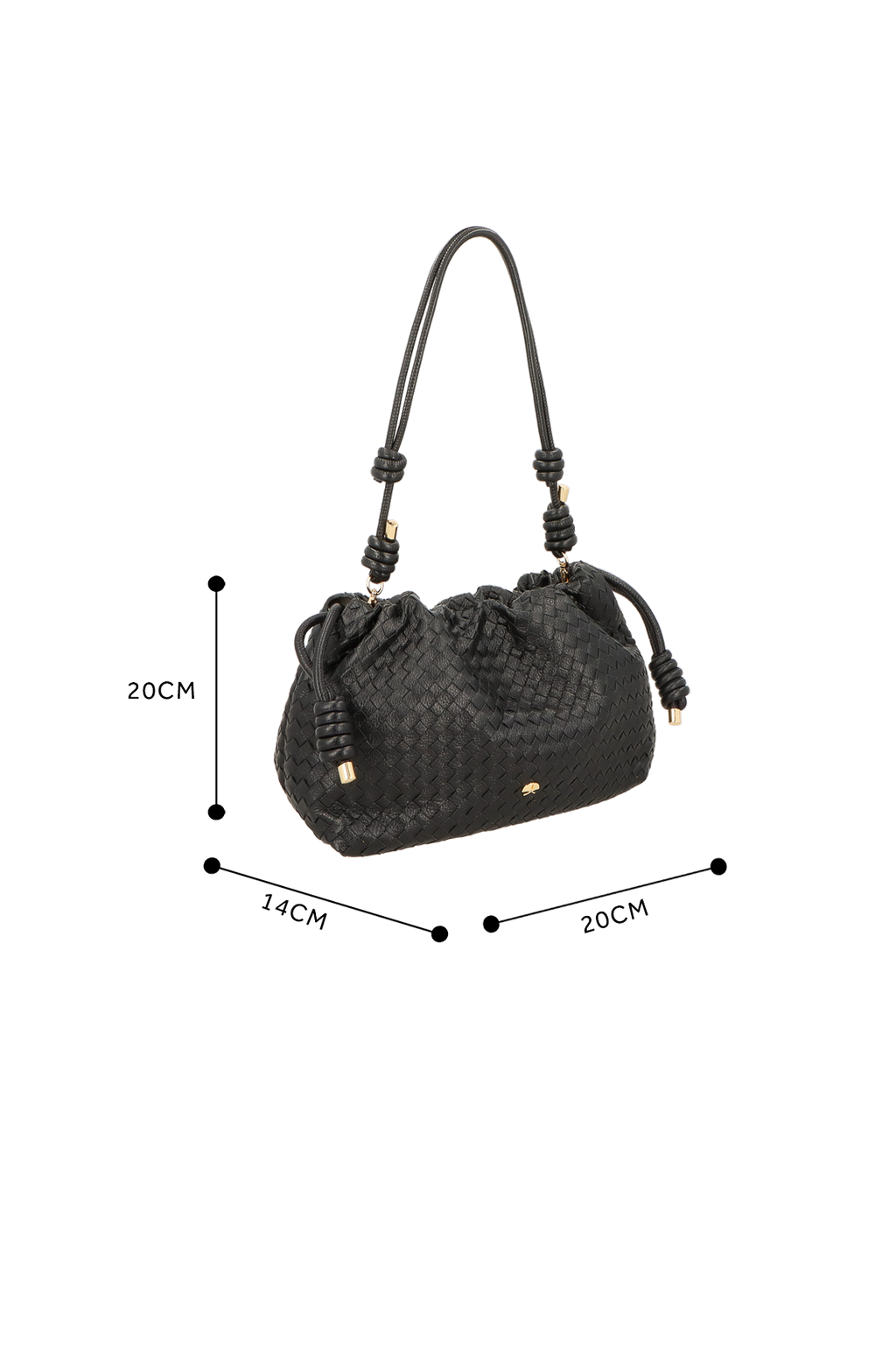 A bolsa média em couro preto aposta na sofisticação do trabalho em tressê, que valoriza o acabamento artesanal e garante textura ao visual. O modelo possui fechamento prático por ajuste e alça de mão com detalhe em nós, que adiciona charme contemporâneo à peça. Um design versátil, que une autenticidade e elegância em cada detalhe.