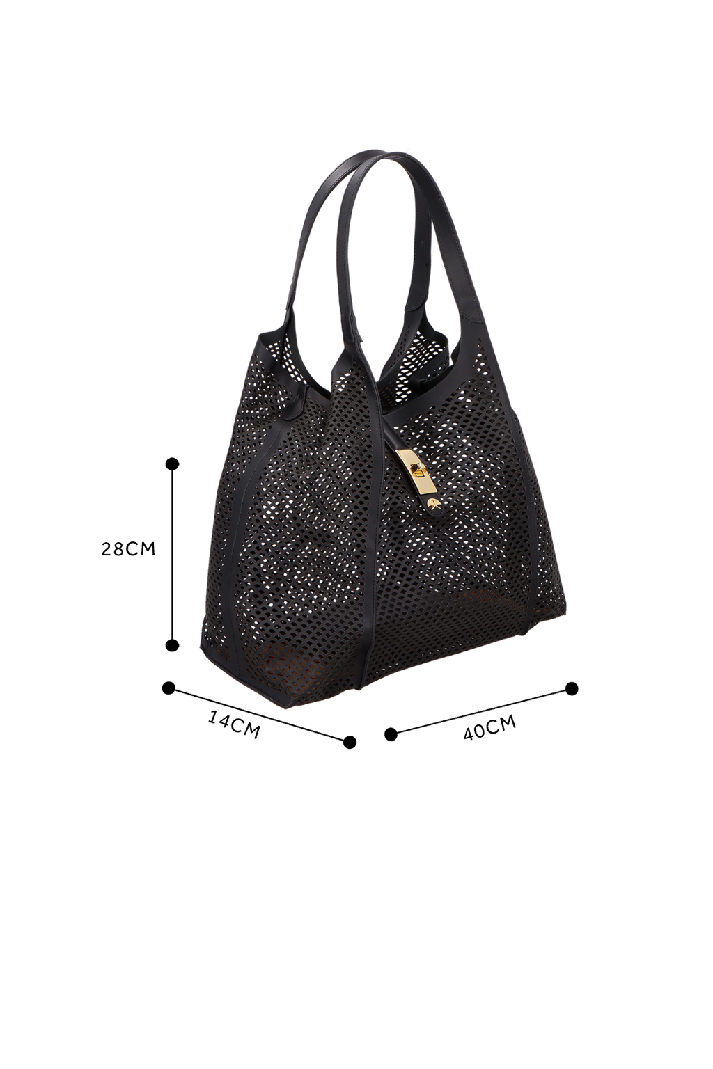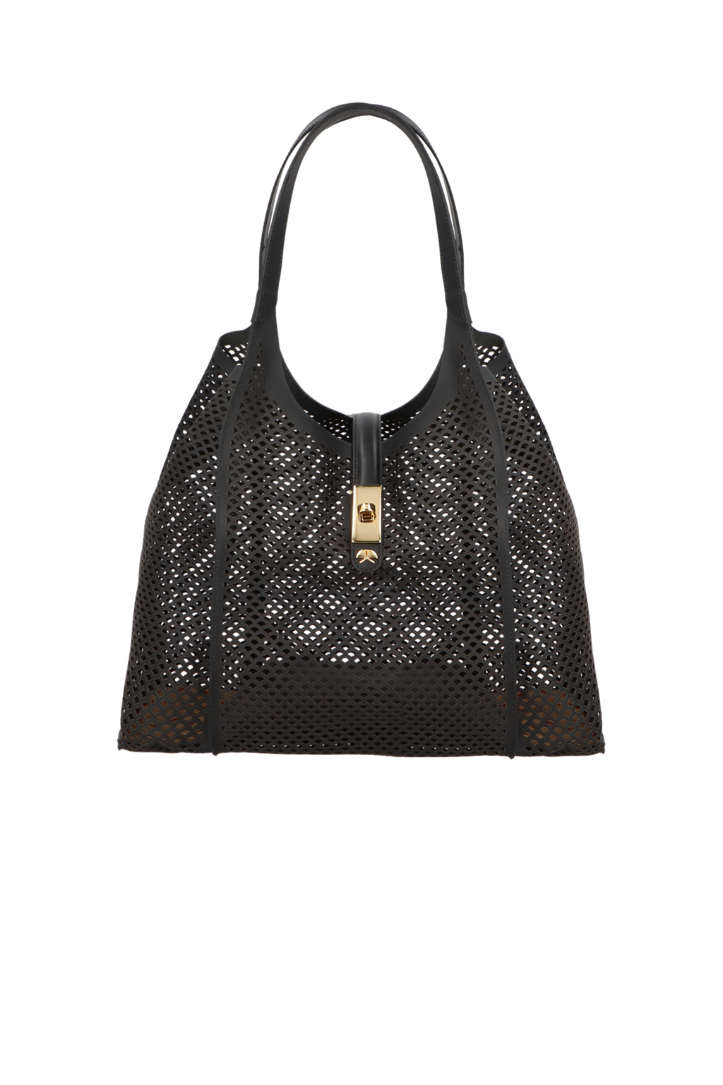 BOLSA TOTE GRANDE EM COURO PRETO COM RECORTES