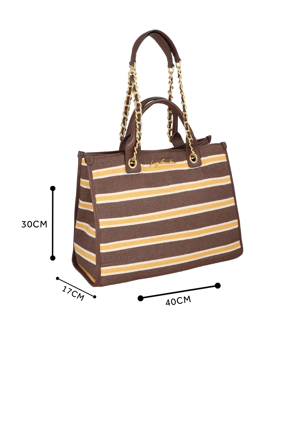As maxi bags estão cada vez mais em alta e são sucesso garantido no verão. O shape oversized garante que esse modelo vai acompanhar você por todo o dia e em qualquer situação. A alça em corrente eleva o visual descontraído das listras coloridas em tons de marrom e amarelo, conferindo a versatilidade necessária para o verão.