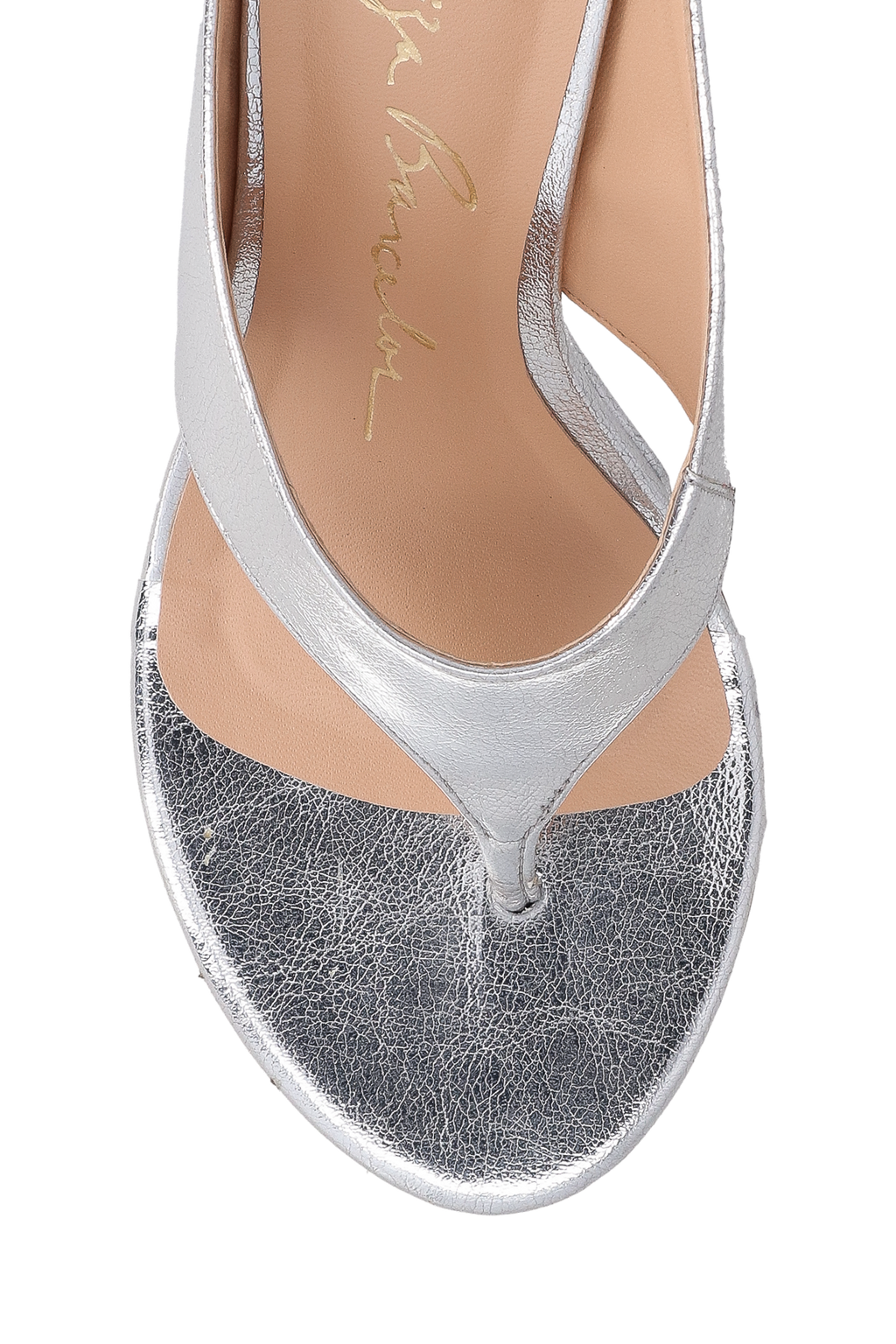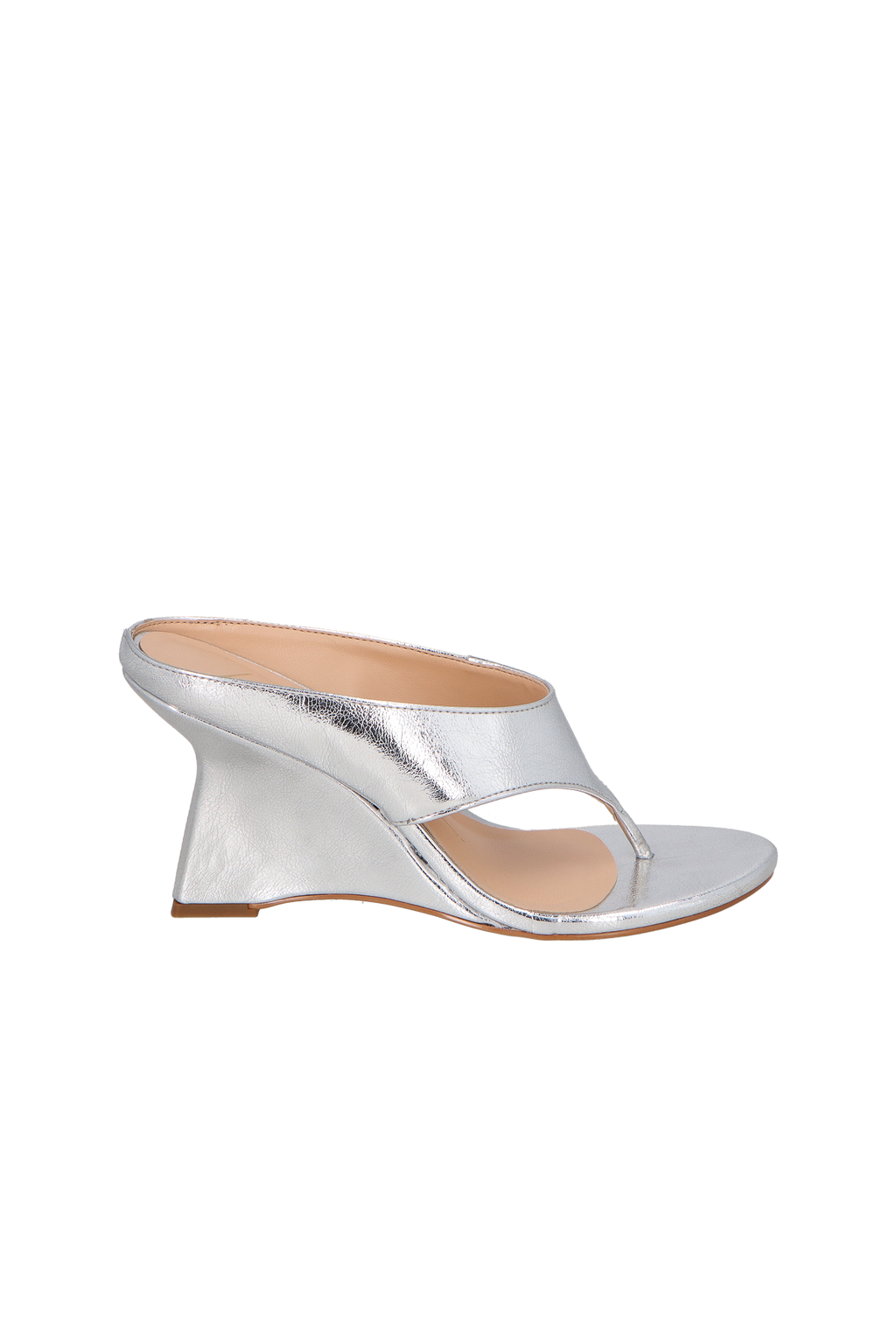 MULE DE DEDO EM METALIZADA PRATA COM SALTO ANABELA ESCULTURAL