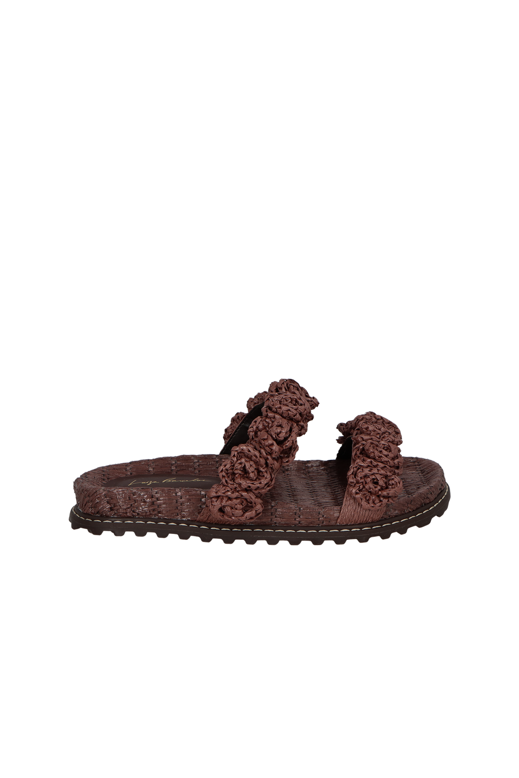 O charme natural da ráfia encontra a delicadeza das flores em umacombinação única, que exala a essência veranil na nova papete Luiza Barcelos. O modelo combina o tom marrom café com o solado forrado em ráfia, bico arredondado e palmilha anatômica. A união perfeita entre conforto e estilo natural.