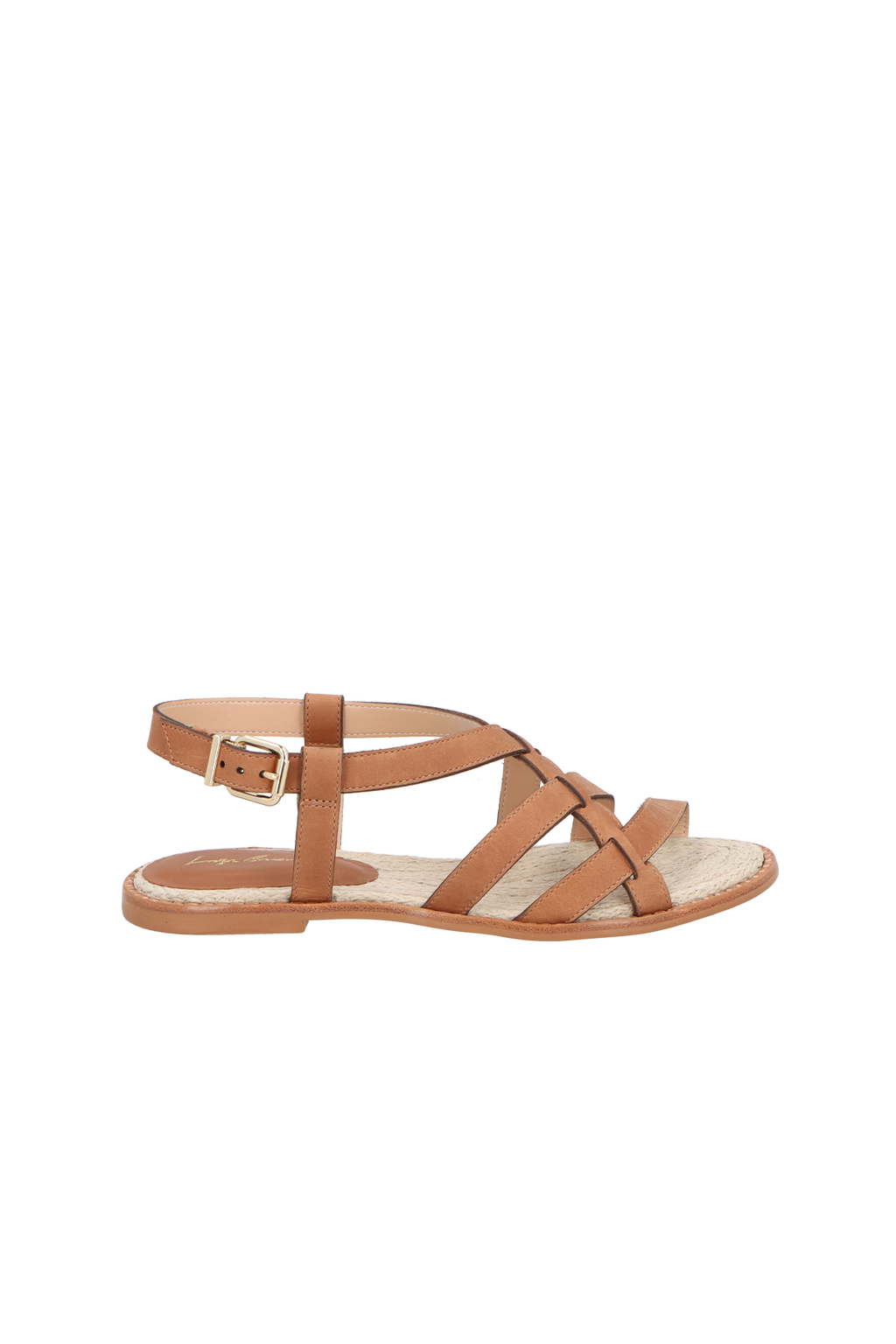 A rasteira em couro no tom de caramelo aposta no design de tiras entrelaçadas, que confere leveza e sofisticação ao visual. O fechamento com fivela lateral garante conforto e praticidade, enquanto o formato delicado valoriza produções com um toque artesanal e elegante