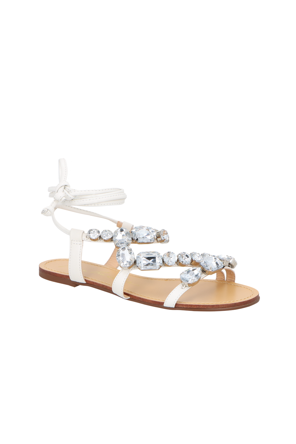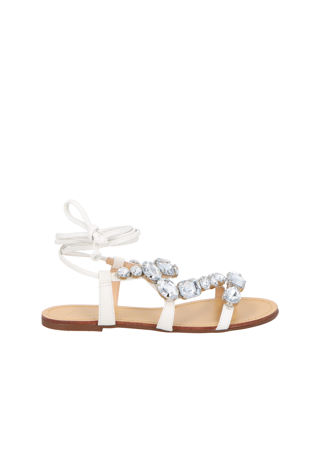 SANDÁLIA RASTEIRA EM COURO OFF WHITE COM PEDRARIAS