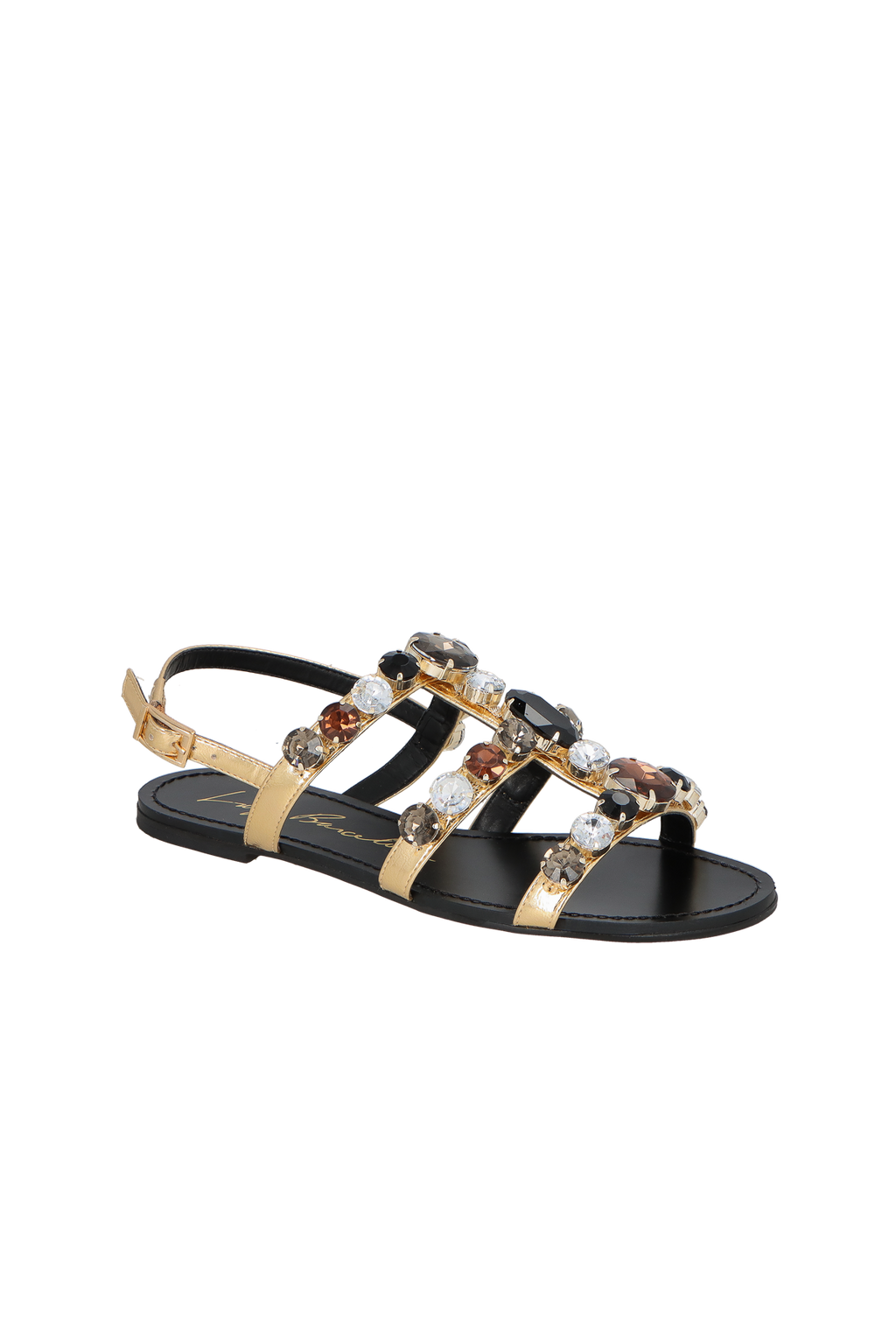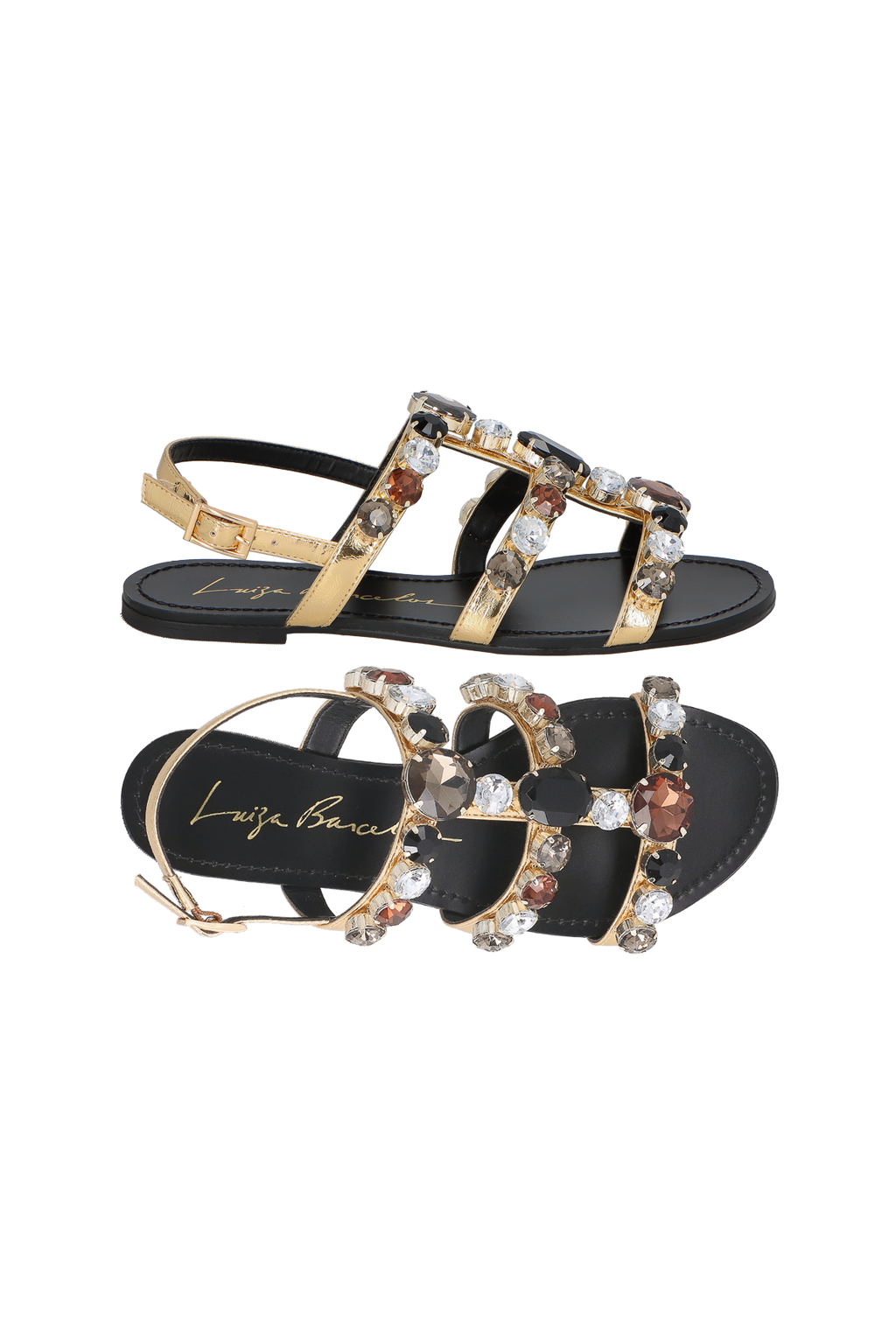 SANDÁLIA RASTEIRA OURO MAXI PEDRARIAS COLORIDAS