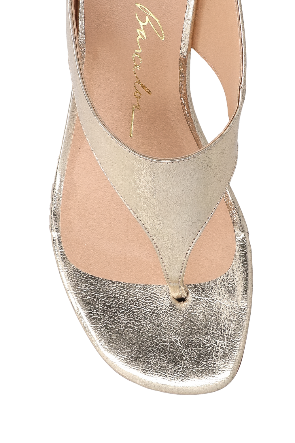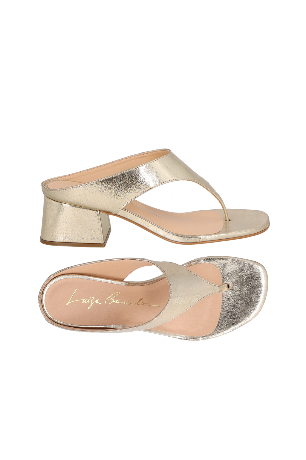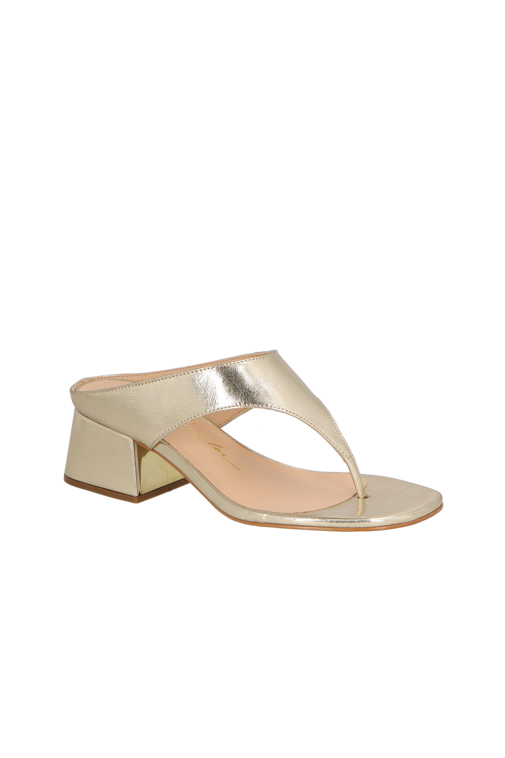 Com design minimalista e linhas esculturais, esta sandália traz a sofisticação do metalizado no tom dourado em uma proposta contemporânea e elegante. A tira entre os dedos valoriza a silhueta dos pés, enquanto o salto médio bloco, com detalhe metalizado interno, adiciona um toque de modernidade ao visual.