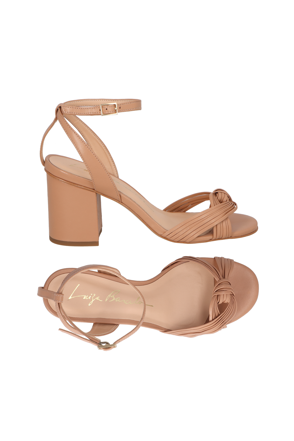 Feminilidade e delicadeza combinadas em uma sandália que traz a essencia de Luiza Barcelos. Produzida em couro no tom bege blush, o modelo possui salto bloco médio, a frente formada por tiras finas que se cruzam em um desenho delicado e fechamento por fivela ajustável no tornozelo.
