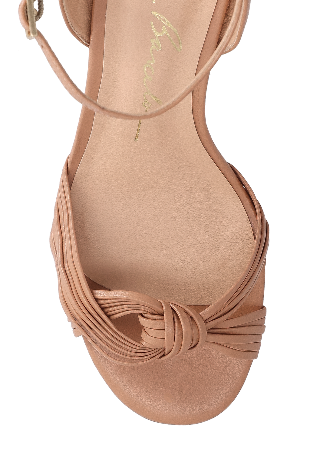 SANDÁLIA SALTO BLOCO MÉDIO EM COURO BEGE BLUSH COM TIRAS FINAS CRUZADAS