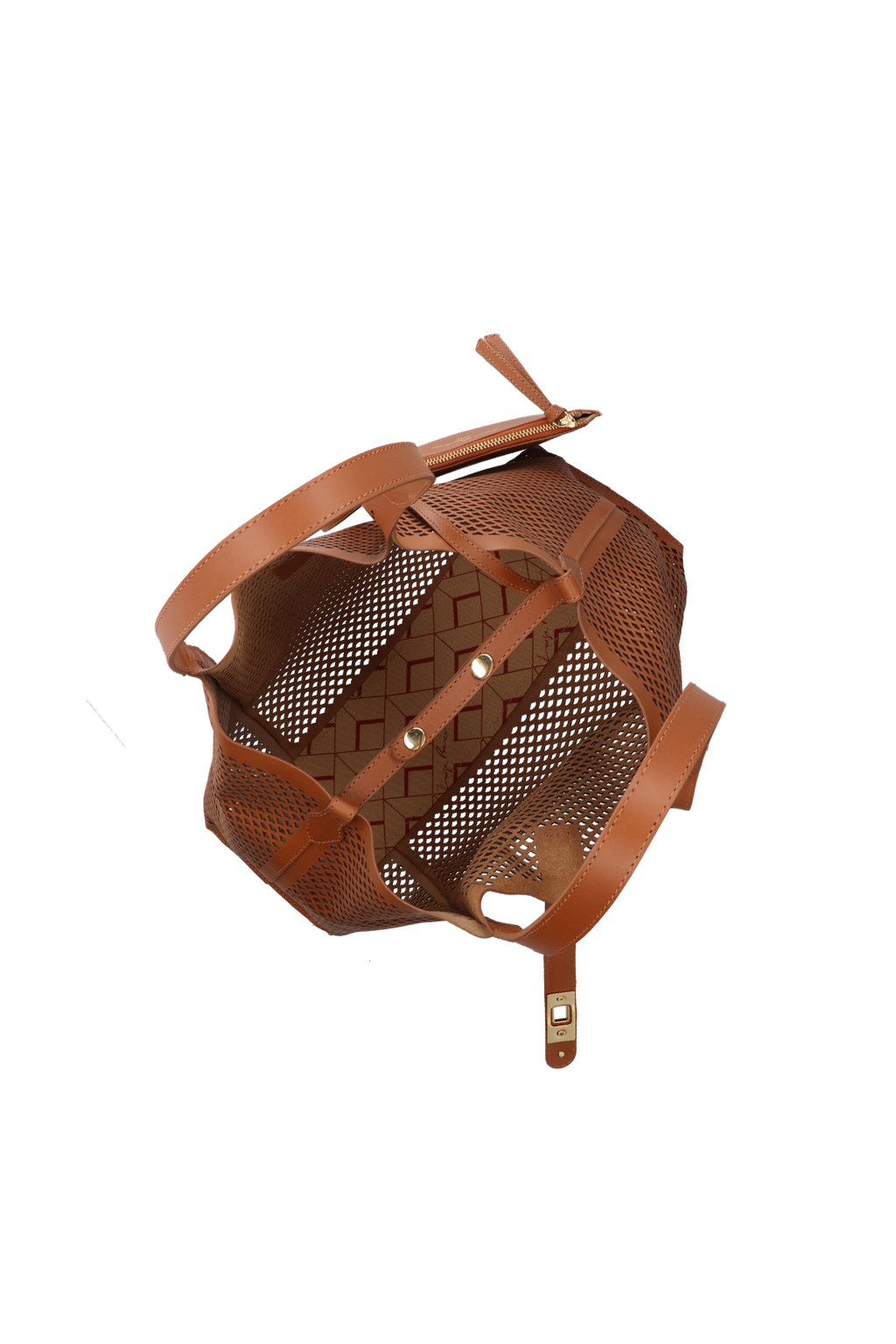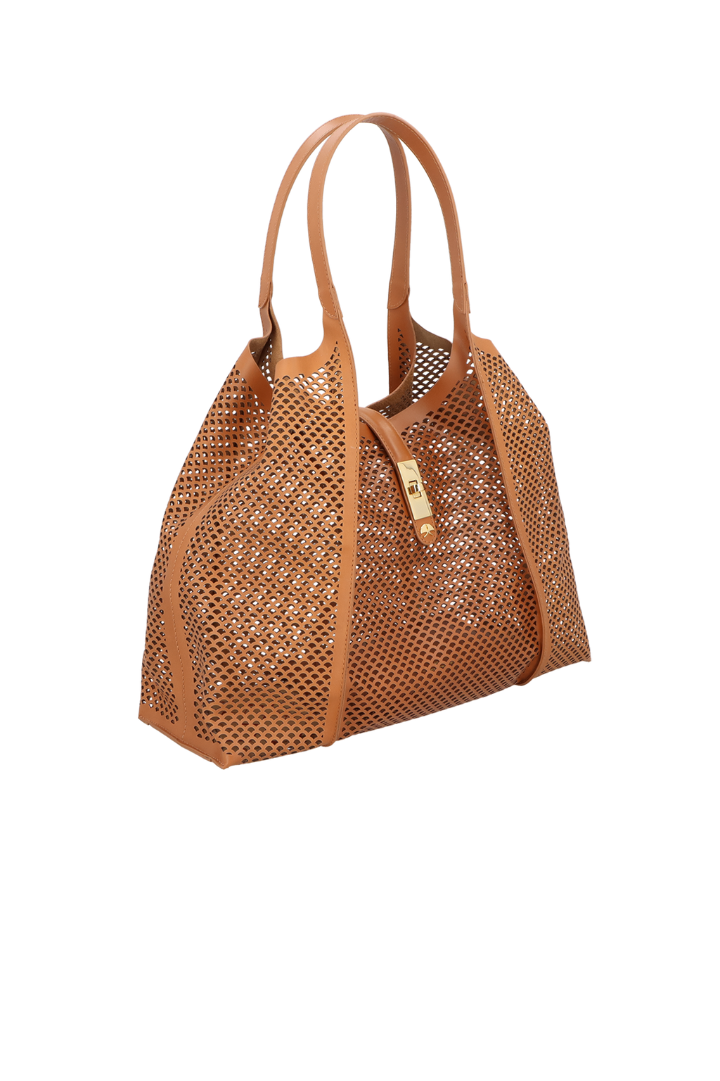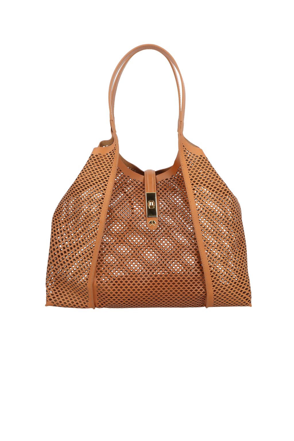 BOLSA TOTE GRANDE EM COURO CARAMELO COM RECORTES