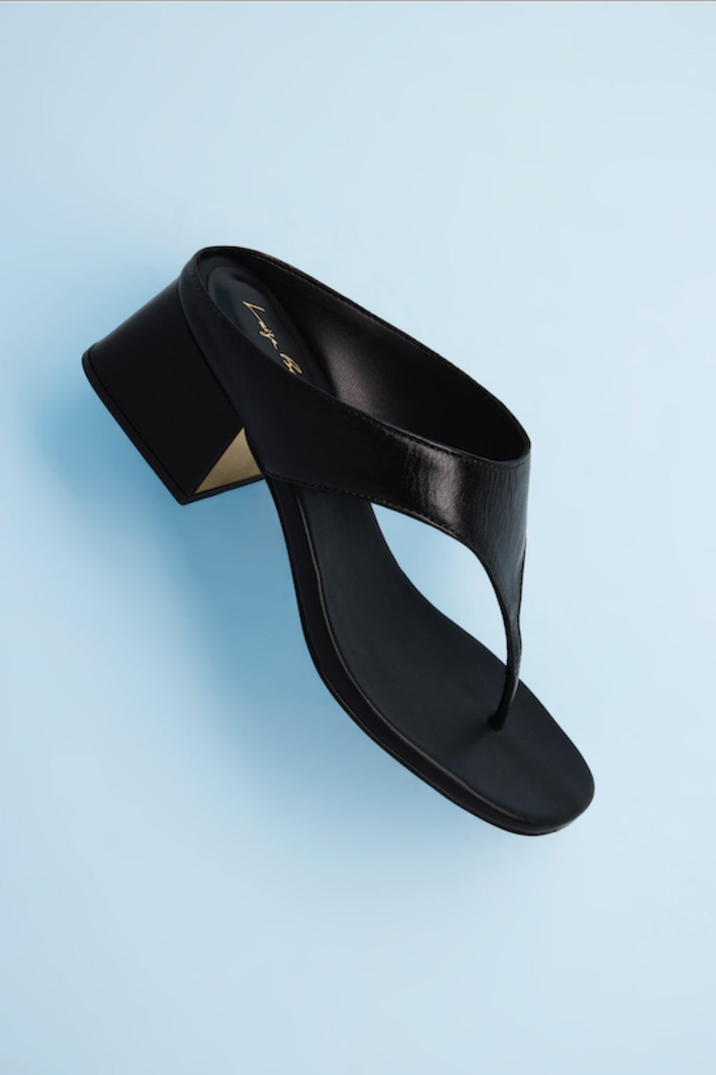 Com design minimalista e linhas esculturais, esta sandália traz a sofisticação do couro liso no tom de preto em uma proposta contemporânea e elegante. A tira entre os dedos valoriza a silhueta dos pés, enquanto o salto médio em bloco, com detalhe metalizado interno, adiciona um toque de modernidade ao visual. A palmilha confortável e o acabamento refinado completam o modelo com equilíbrio entre estilo e funcionalidade.